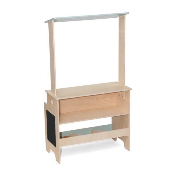 El Puesto de Mercado de Madera Trixie es un juguete perfecto para recrear la experiencia de comprar y vender, estimulando la imaginación y el juego de rol. Su diseño incluye toldo superior, mostrador y estantes de almacenamiento para colocar frutas, verduras y otros accesorios de juego. Fabricado en madera de alta calidad y pintura al agua, es seguro, resistente y combina perfectamente con la caja registradora y otros juguetes de la colección Trixie.
