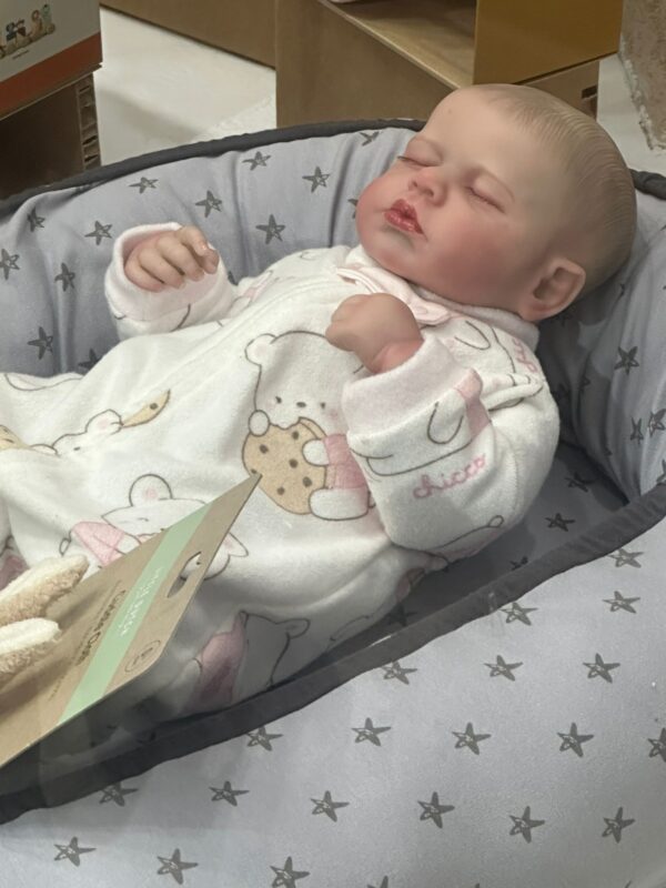 El Muñeco Reborn 50cm de Tana Martínez es un bebé hiperrealista diseñado con gran atención al detalle para simular la apariencia y el tacto de un recién nacido. Está confeccionado en vinilo de alta calidad con cuerpo de tela blandito, lo que lo hace muy agradable de abrazar. Su cabello está cuidadosamente pintado para aportar mayor realismo y viene vestido con ropa de algodón suave. Ideal como regalo especial, colección o para fomentar el juego simbólico en niños y niñas.